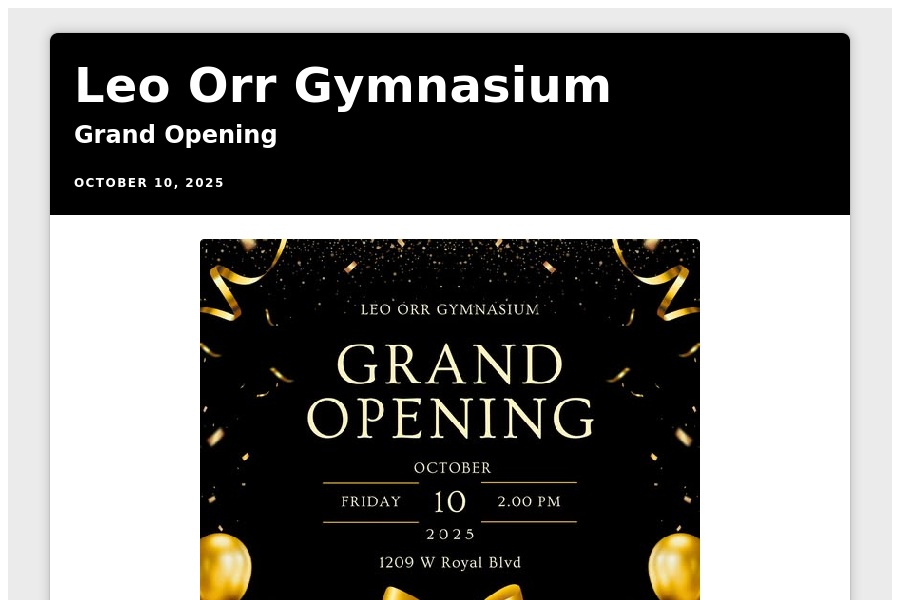 Leo Orr Gymnasium Grand Opening October 10, 2025