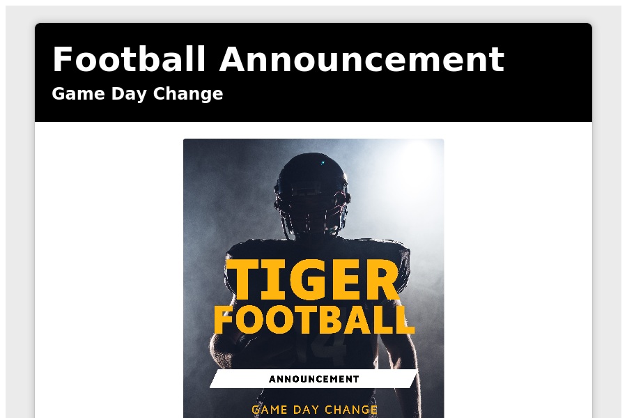 ATTN Football Fans Due to weather concerns, Tiger Football has